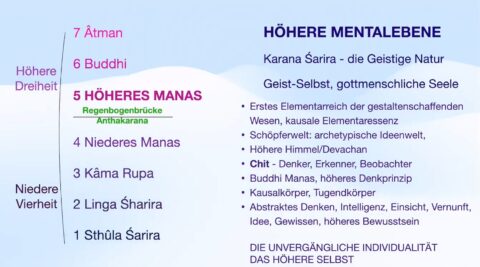 Allgemein bekannt ist die Dreiheit des Menschen: Körper, Seele, Geist. Die von Helena Blavatsky später gelehrte siebenfältige Konstitution (Wesensglieder) oder