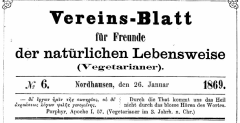 Vereinsblatt für Freunde der natürlichen Lebensweise (Vegetarianer), 1869.
