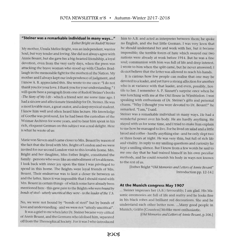 - Esther Bright “Old Memories and Letters of Annie Besant”, Introduction p 14. Nachdruck in